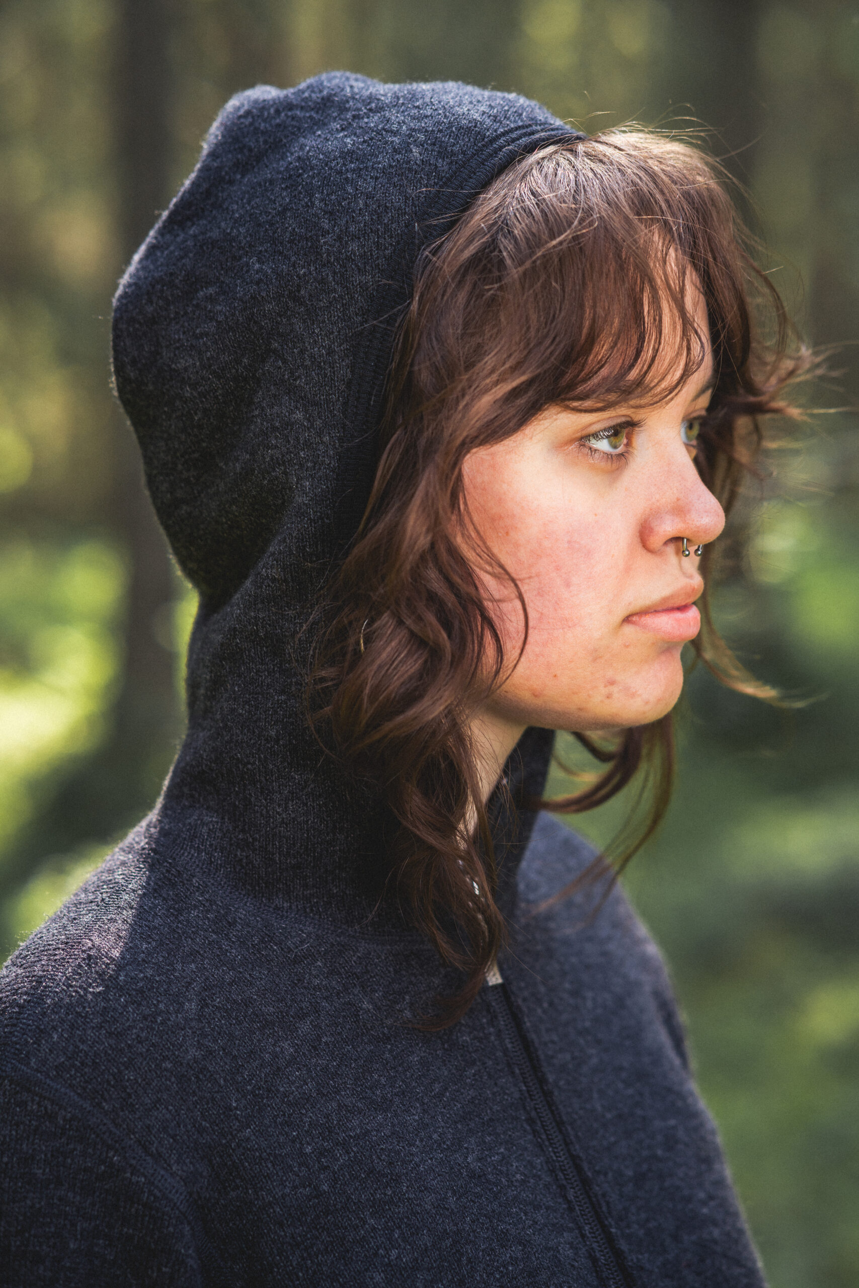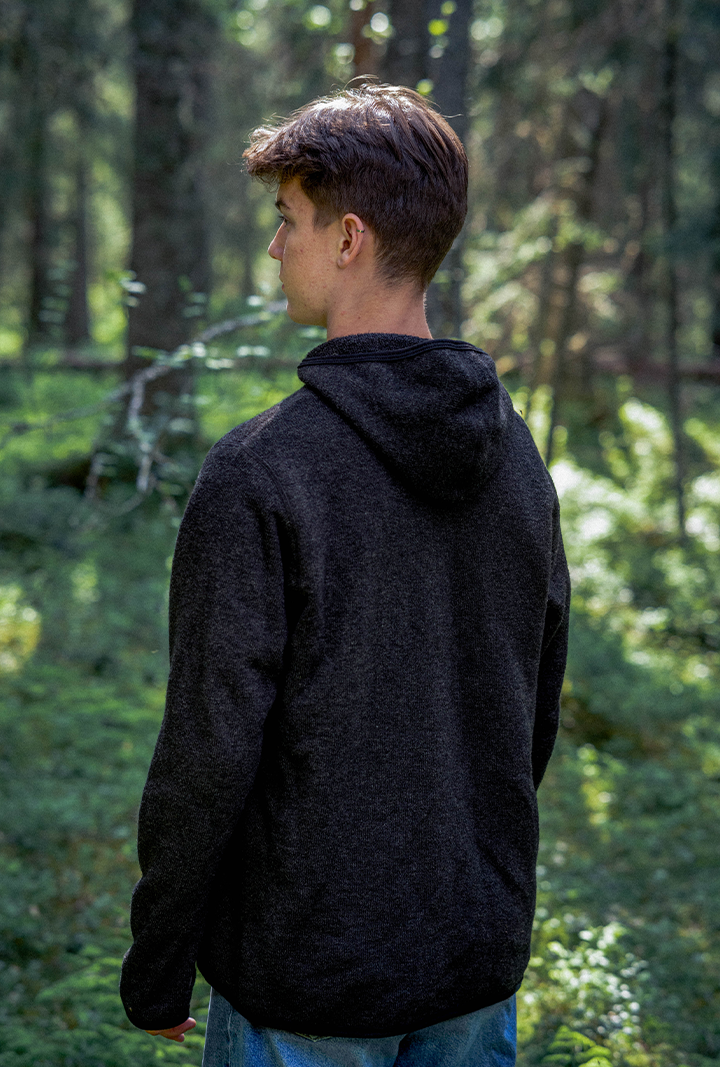 The Full Zip Hood Jacket is a unisex jacket with a hood, full-length zipper and a more relaxed fit. The yarn used consists of 70% recycled production waste from our factory. The garment has been produced in a limited edition and is the result of the first project within our new development platform, Woolpower Forward.
