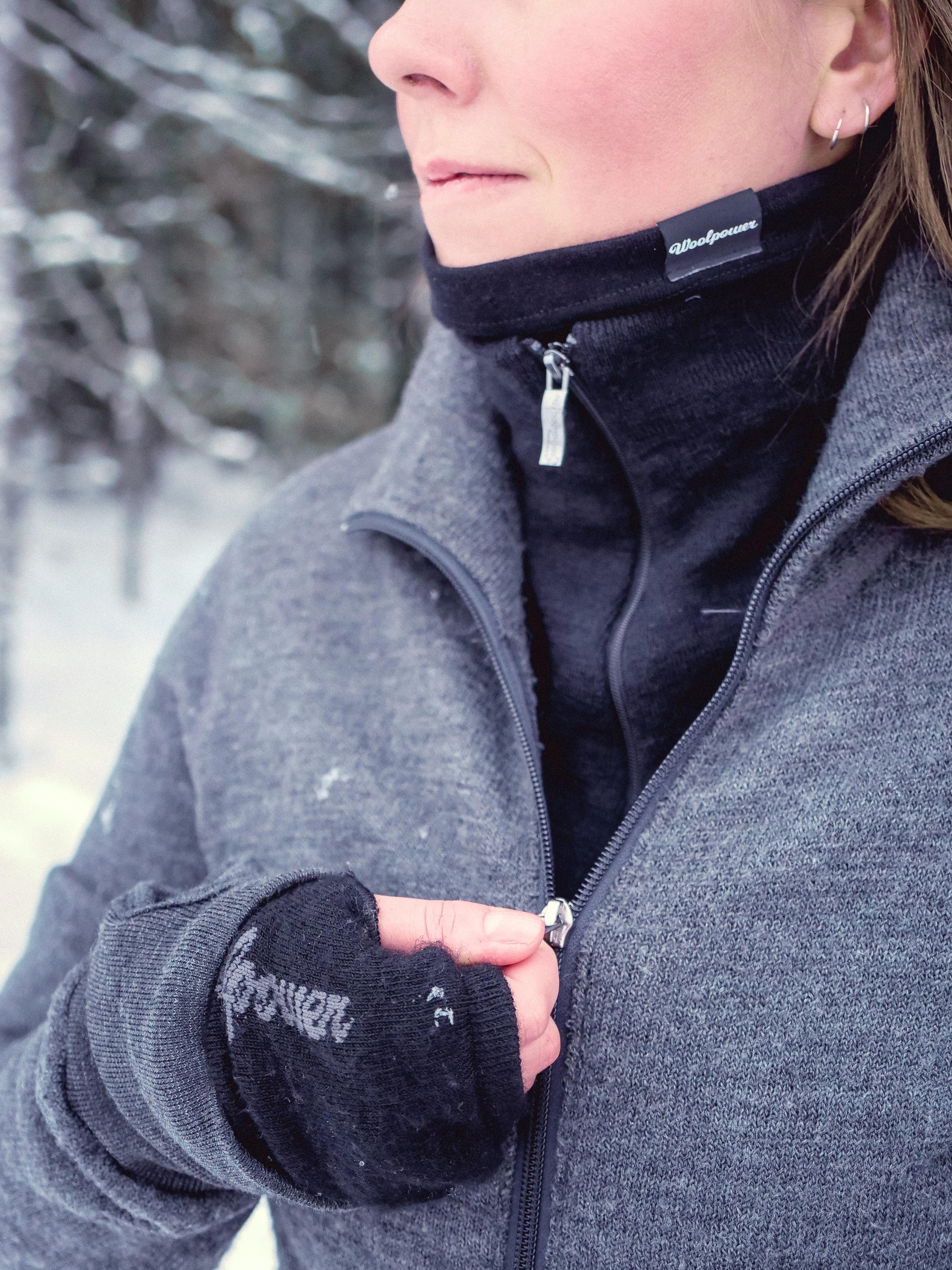 Vi rekommenderar ett första lager i ull, eftersom det också kan värma när det är fuktigt och därmed ger dig en varm och torr känsla även i pauser.