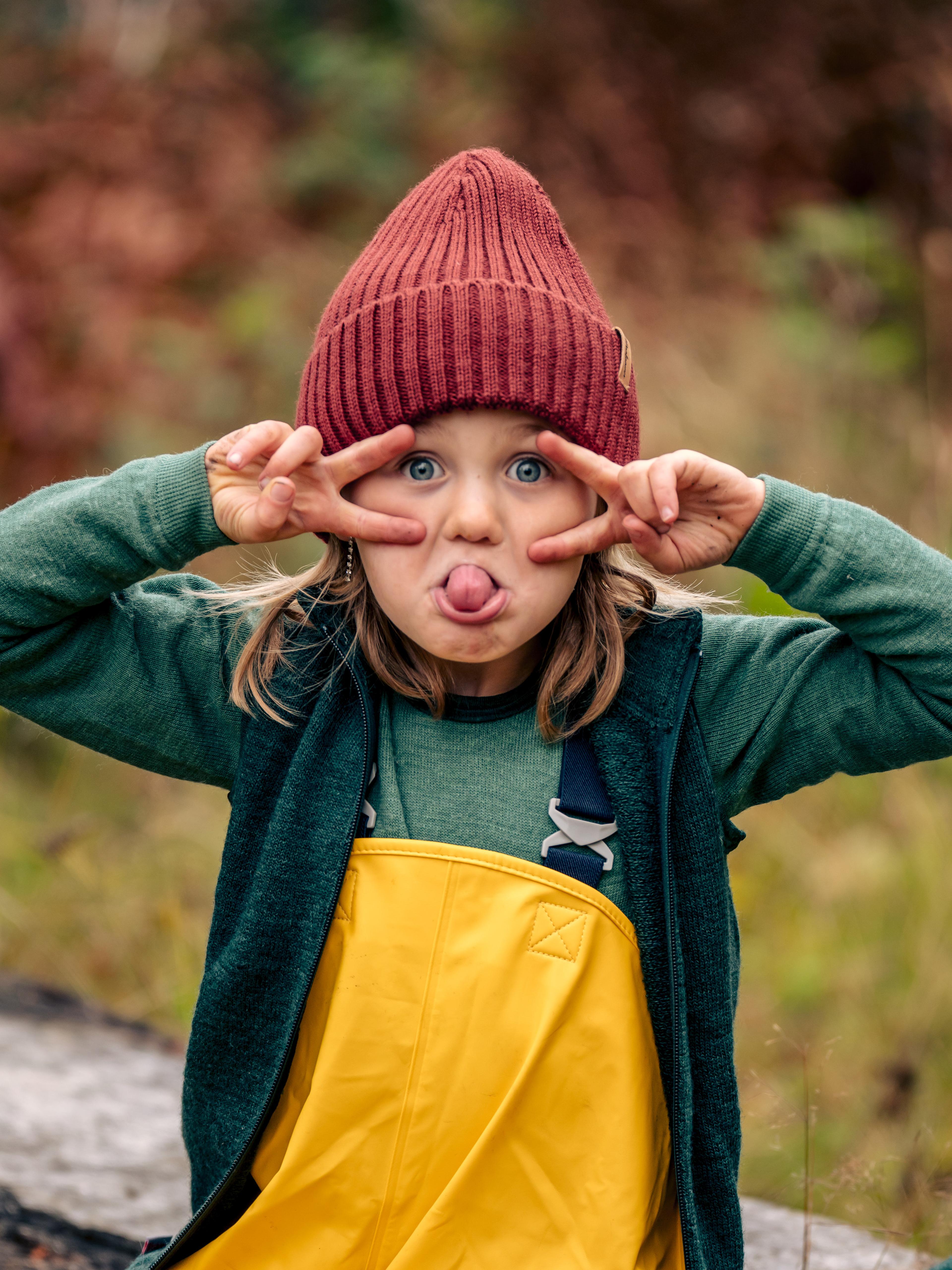 Samtidigt transporterar ull bort fukt från kroppen. När barnet blir svettigt leds fukten bort, vilket gör att plagget känns torrare och varmare även under lek. Det är en av anledningarna till att ull fungerar lika bra i kyla som under mildare dagar.