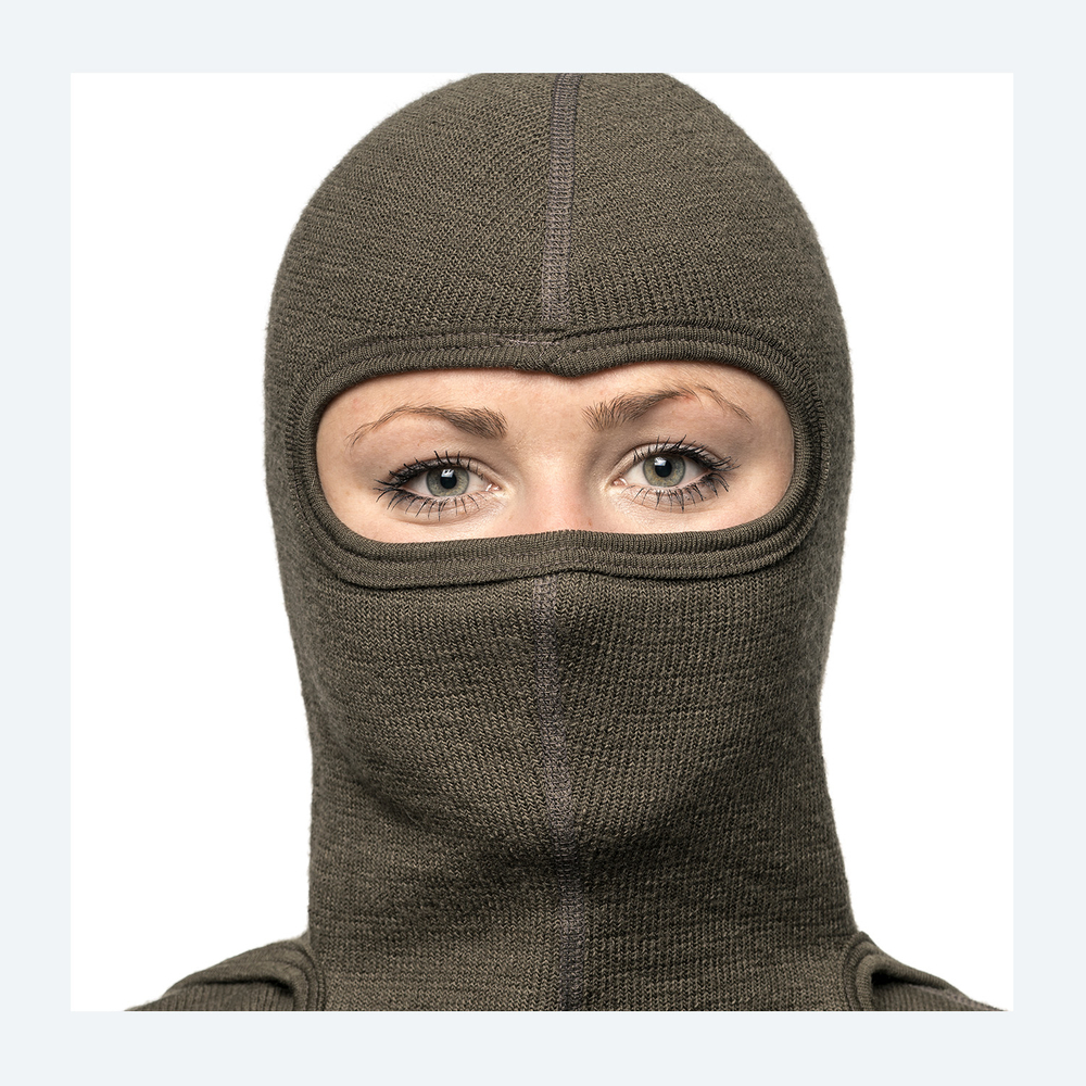 Denna kraftigare balaklava är framtagen för att klara de tuffaste förhållandena på fjället eller under långa arbetspass i sträng kyla. Frottéöglorna på insidan binder stora mängder luft, vilket skapar en kraftig termisk barriär mot kylan samtidigt som merinoullens naturliga egenskaper ser till att plagget andas.