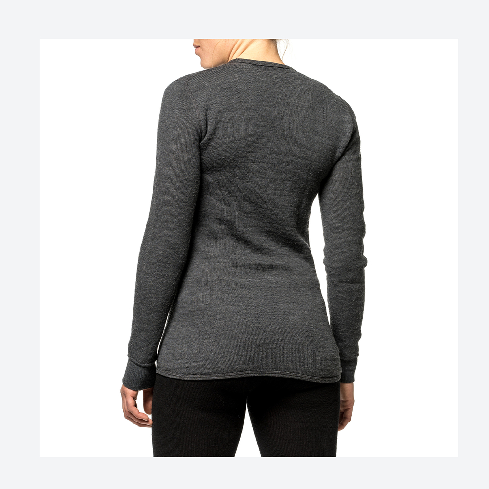 - Inga skavande sömmar: Crewneck 200 är rundstickad, vilket innebär att den helt saknar längsgående sömmar. Det ger en oslagbar komfort under ryggsäcksremmar eller arbetskläder.