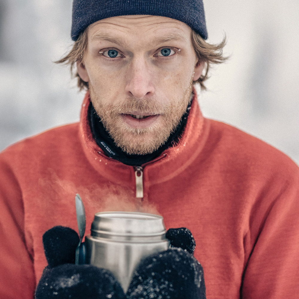 Jackan är designad för att bäras som ett andra lager ovanpå ett underställ. Den kraftiga frottéstickningen binder stora mängder luft, vilket skapar en effektiv värmeisolering även vid lägre aktivitetsnivåer.