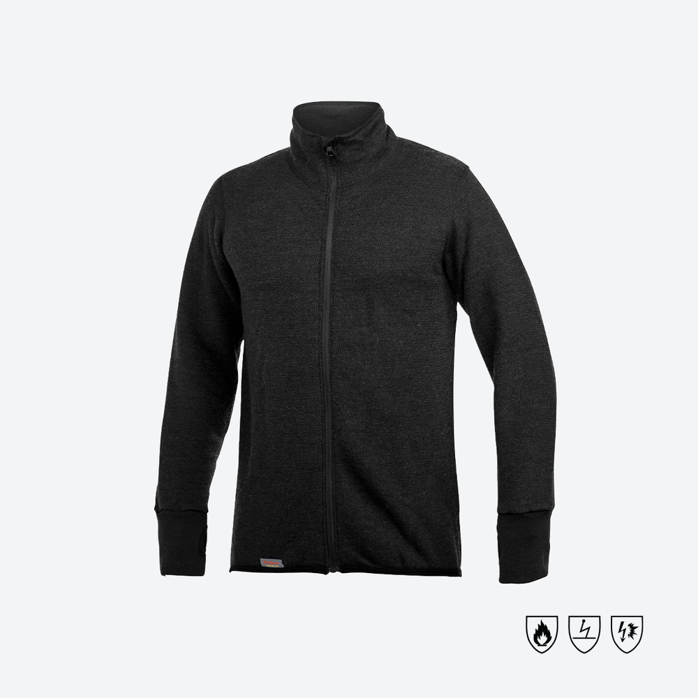 Certifierat enligt särskilda EN standarder som flamskydd, antistat och skydd mot ljusbåge. Ull är flamhämmande i sig och smälter inte vilket förebygger svåra brännskador. För maximalt skydd rekommenderar vi att du använder ett komplett underställ tillsammans med övriga certifierade ytterplagg.