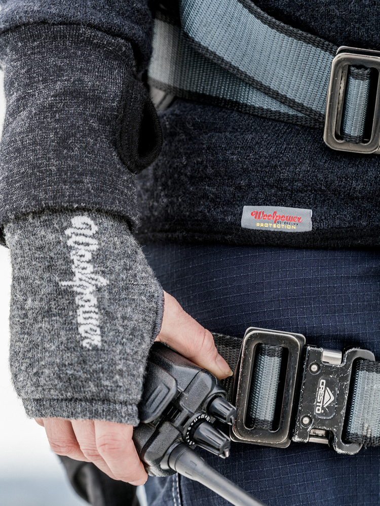 Materialet har frottéöglor på insidan binder stora mängder luft och effektivt isolerar kroppsvärmen. Kombinationen av merinoull och syntetfibrer ger ett slitstarkt material med hög komfort och god fukttransport.