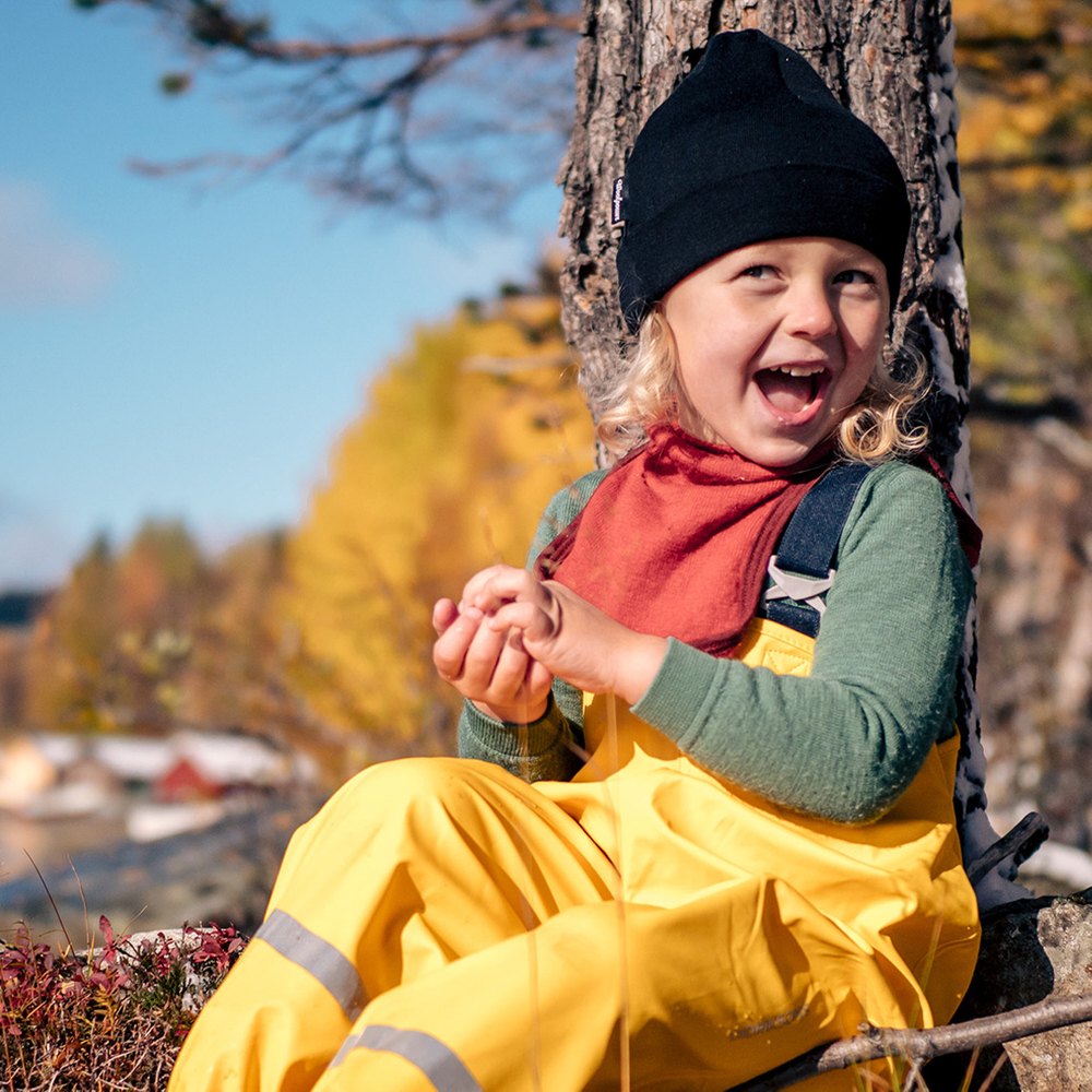 - Mjuk och slitstark: Kombinationen av fin merinoull och slitstarka syntetfibrer ger ett material som är mjukt mot huden, kliar minimalt och tål tuff lek under lång tid.