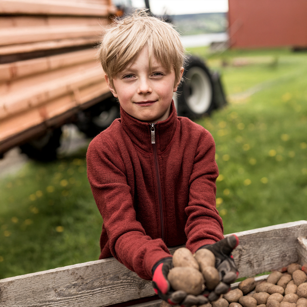 - Slitstark & Lättskött: Blandningen av merinoull och syntetfiber gör jackan mycket robust för daglig lek. Den tål maskintvätt i 60 grader.