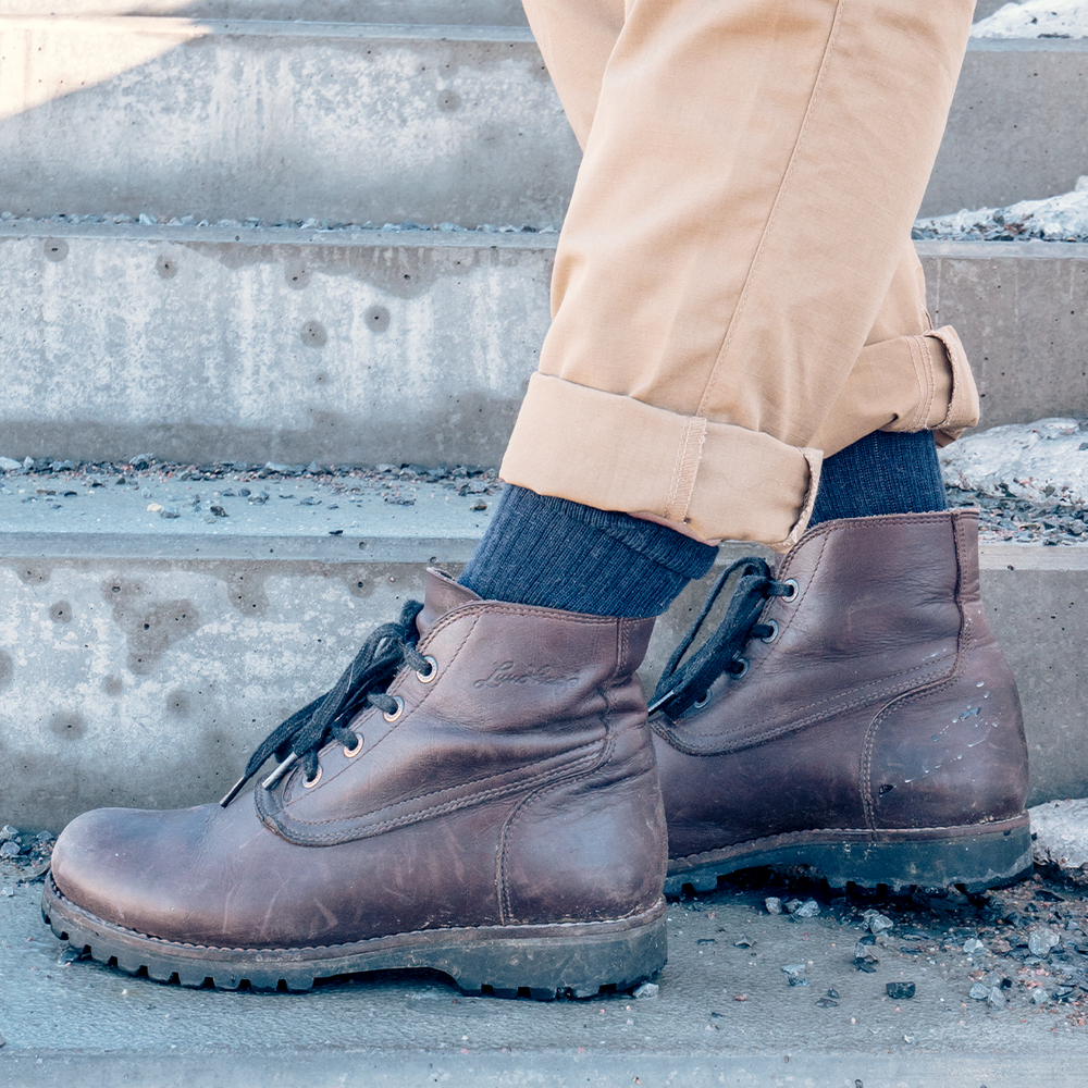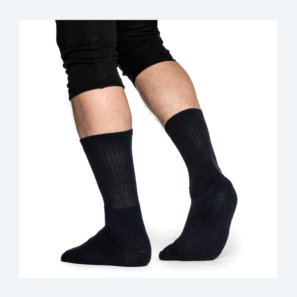 Socks 200 är en av våra mest mångsidiga vardagsstrumpor, stickade i mjuk och smidig Ullfrotté Original 200 i foten men med ett ribbat skaft. De fungerar utmärkt året runt och får enkelt plats i dina vanliga skor samtidigt som de håller fötterna torra och varma.
