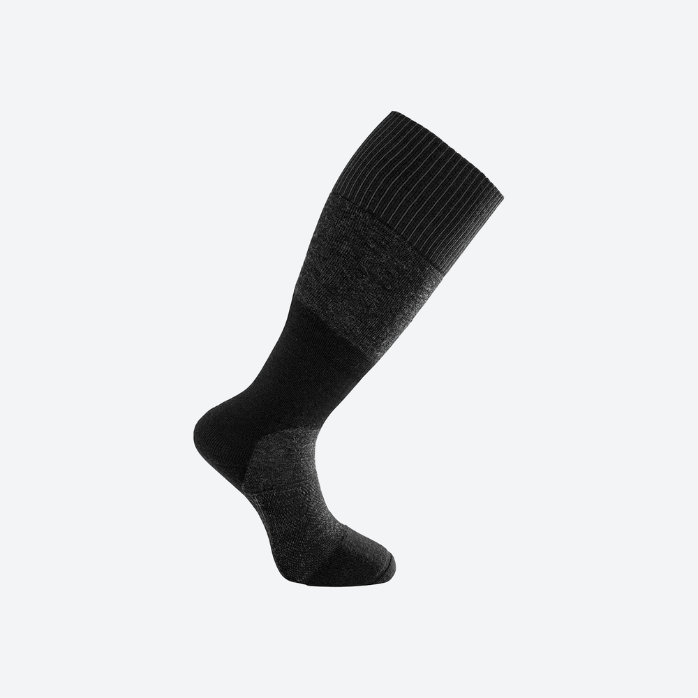 Skilled Knee-high 400 är en tekniskt konstruerad knästrumpa i merinoull där ullfrotté och komprimerande stickstrukturer kombineras för att ge stöd, isolering och komfort. Den sitter tätt mot fot och underben och håller sig på plats under aktivitet, vilket gör den idealisk för kalla förhållanden och högre kängor eller pjäxor.