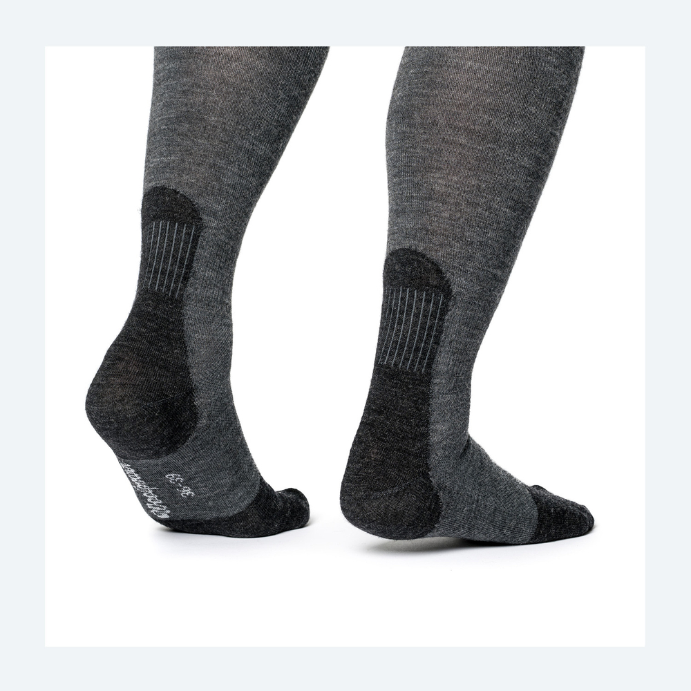 Denna knästrumpa kombinerar känslan av en tunn liner med en slätstickad konstruktion som sluter tätt runt foten och sitter på plats i rörelse. Den ger stöd över hela underbenet och är utvecklad för aktiviteter där passform och stabilitet är avgörande, både vid högintensiv träning och som ett första lager i högre skor och stövlar.